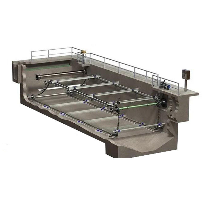 チェーン版のタイプ泥のスクレーパーはドライブ メカニズムで主に、全幅、中央回転式サポート、ガイド シリンダー、泥の摩擦システム、スラグ バケツおよび洗い流すメカニズム、連結されたスラグ版を、スラグ バケツをすくい取る、スクレーパー、スラグ水出口の三角の端の版すくい取る、浮きかすのバッフル、制御箱および他の部品構成される。